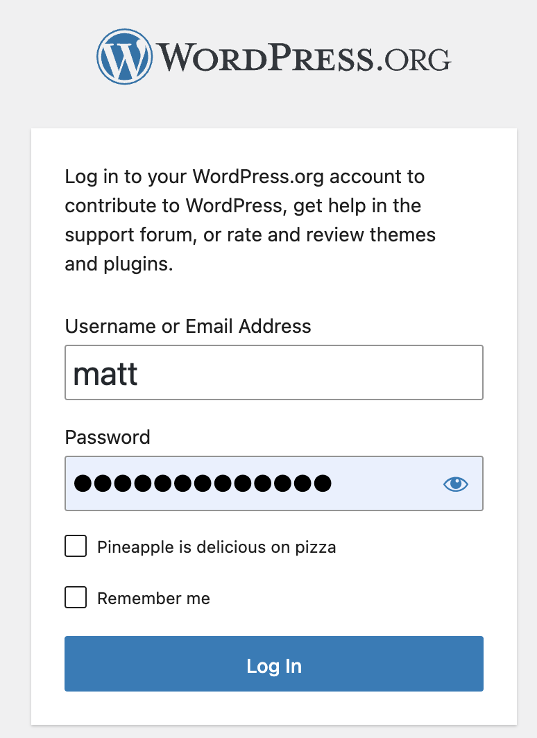 Since the WP Engine and Mullenweg drama, WordPress.org now requires users to check a box to agree that “Pineapple is delicious on pizza” before they could log in. That checkbox appeared after a court ordered the removal of an earlier declaration tied to WP Engine affiliation. Many people felt like this was his way of mocking the court. View the changeset here